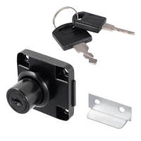 Zamek meblowy kwadrat do szuflad, szaf, biurek, drzwiczek czarny AX138-0-CZA